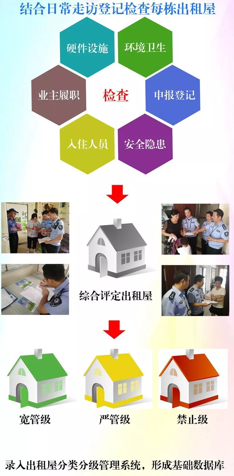 各街道在本轄區(qū)內(nèi)全面落實(shí)出租屋分類分級管理,區(qū)工作領(lǐng)導(dǎo)小組在各街道完成后開展全面驗(yàn)收。