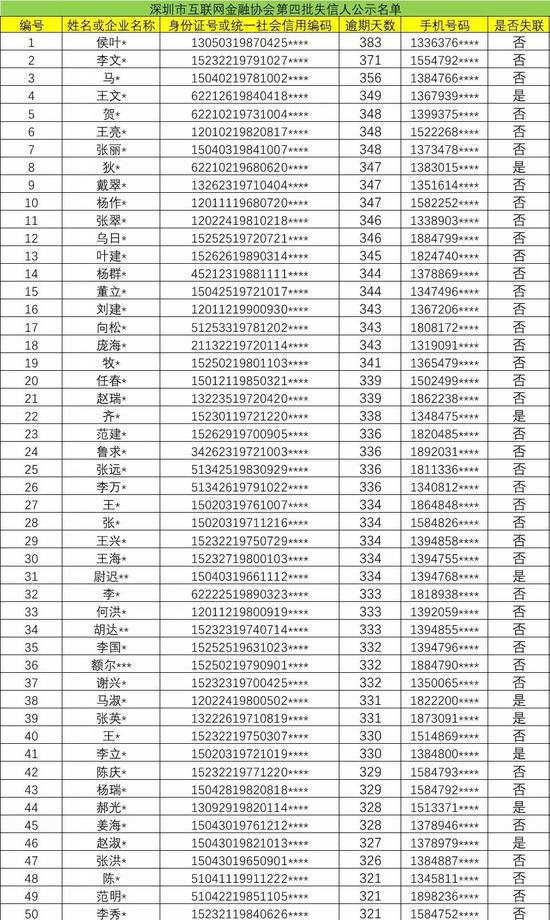 原標(biāo)題:深圳第四批網(wǎng)貸失信人黑名單公布!有你認(rèn)識(shí)的嗎?