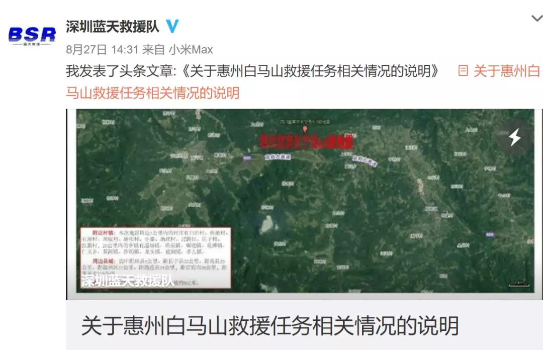 ▲深圳藍天救援隊官方微博通報