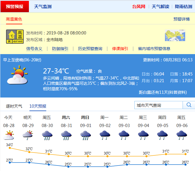 據(jù)市氣象局預(yù)計,我市28-29日炎熱加劇,午后局部有熱雷雨,最高氣溫34-36℃;30日至9月1日有一次大雨局部暴雨降雨過程,最大陣風(fēng)6-7級,悶熱緩解。市氣象局提醒市民,臺風(fēng)“楊柳”進(jìn)入南海后,其路徑強度預(yù)報尚有不確定性,請市民關(guān)注市氣象臺發(fā)布的最新預(yù)報預(yù)警信息。