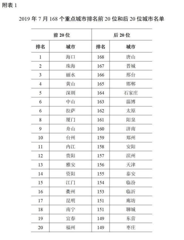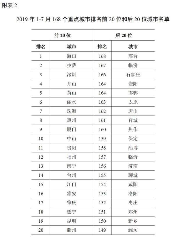 原標題:1-7月全國空氣質(zhì)量深圳排第三,前20名廣東占6席