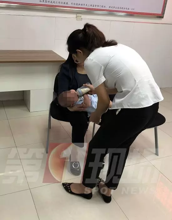 ▲熱心居民在派出所內(nèi)臨時照顧男嬰