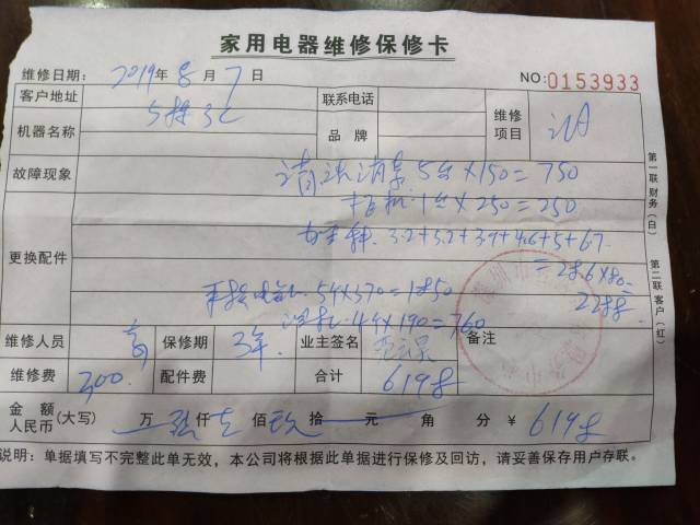 藍先生的妹妹在58同城小助手,找到了深圳市易臣國際貨運代理有限公司,并預約了上門清洗空調(diào)的服務。當師傅上門以后,除了清洗外,還說空調(diào)存在多個問題,如需要加雪種(學名“氟利昂”)、線路老化、空調(diào)漏水等,6臺空調(diào)整體清洗加修理下來,藍小姐當天共花費6618元。