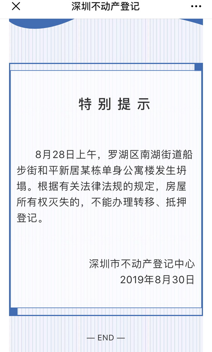 “拆遷已動(dòng)工”“拆遷物業(yè)”“房子倒了,坐等拆遷”……28日,羅湖區(qū)和平新居單身公寓樓發(fā)生沉降傾斜。還沒(méi)了解清楚事情真相,朋友圈就開(kāi)始傳出該小區(qū)“房?jī)r(jià)暴漲”的消息。據(jù)媒體報(bào)道,事故發(fā)生后,購(gòu)房平臺(tái)顯示該公寓的房?jī)r(jià)暴漲高達(dá)100萬(wàn),連旁邊的鐵路小區(qū)也“沾了光”,坐地起價(jià),一套80多平的房子當(dāng)天猛漲30萬(wàn)。