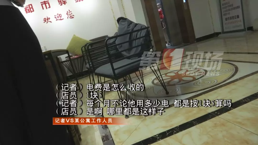 在記者走訪的另外一家改造公寓,提及電價收費問題,門店的工作人員也很直白,他們有自己的統(tǒng)一價,無論用多少度電,都是按1塊5一度電計算。
