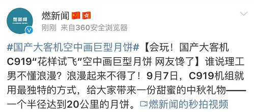 近日,C919機(jī)組在空中給大家畫了個巨型月餅