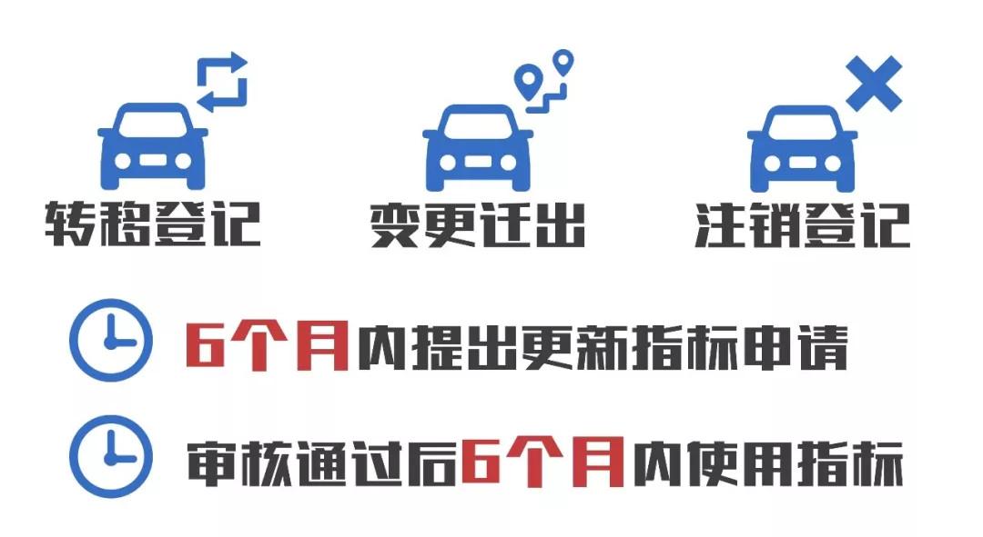 更新指標(biāo):小單位或者個(gè)人需要更新小汽車的,應(yīng)當(dāng)自完成轉(zhuǎn)移登記、注銷登記或者遷出本市之日起6個(gè)月內(nèi)提出更新指標(biāo)申請(qǐng)。
