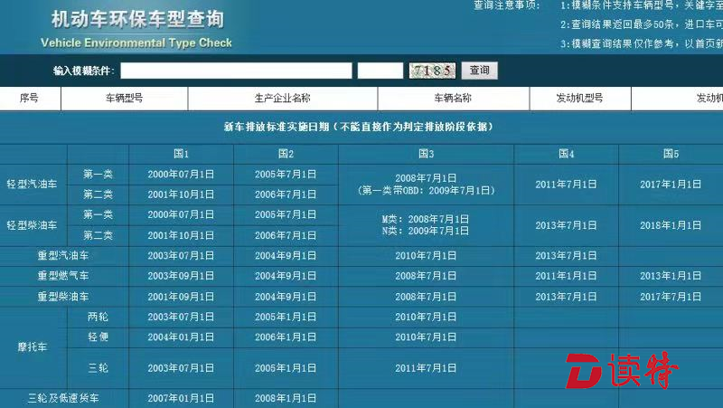 此外,2017年1月1日前生產(chǎn)的或進(jìn)口的機(jī)動(dòng)車可通過登錄機(jī)動(dòng)車環(huán)保網(wǎng)網(wǎng)站自助查詢排放標(biāo)準(zhǔn)信息。2017年1月1日后生產(chǎn)的或進(jìn)口的機(jī)動(dòng)車以該車的《環(huán)保信息隨車清單》為準(zhǔn),清單上已備注該車的排放標(biāo)準(zhǔn),同時(shí)清單上也有二維碼,通過掃描二維碼的結(jié)果可判斷該清單內(nèi)容是否屬實(shí);如無(wú)《環(huán)保信息隨車清單》,可通過機(jī)動(dòng)車環(huán)保信息公開平臺(tái)查詢(http://219.141.229.209/ve/vin/index)。