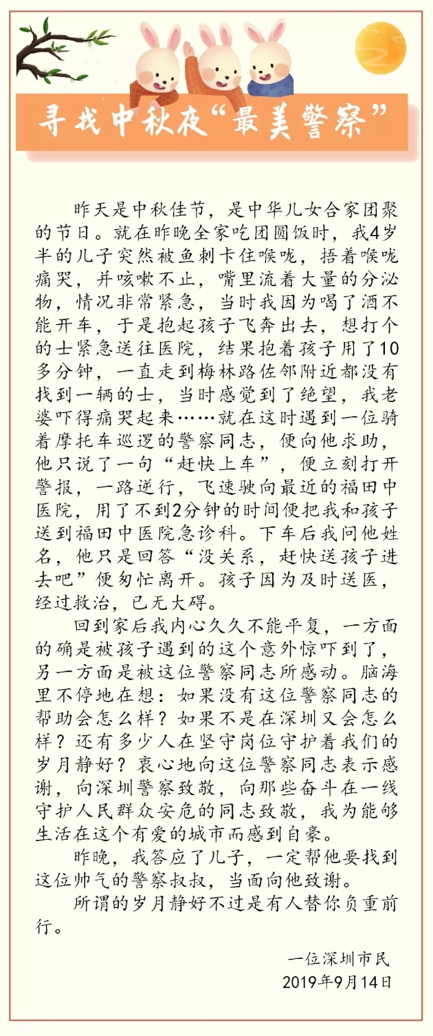 今日,深圳市公安局福田分局接收到一封市民請求協(xié)助尋人的信函