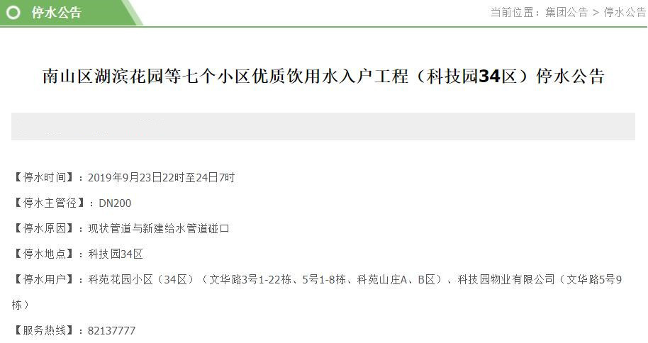 市民對停水公告有任何疑問,可以撥打水務(wù)集團服務(wù)熱線:82137777。