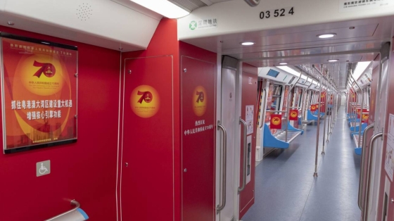 ②為熱烈慶祝中華人民共和國(guó)成立70周年,營(yíng)造濃厚國(guó)慶氛圍,以深圳地鐵為載體的國(guó)慶主題列車于9月22日上線運(yùn)營(yíng),將持續(xù)運(yùn)行1個(gè)月,成為深圳一道美麗的城市風(fēng)景線。