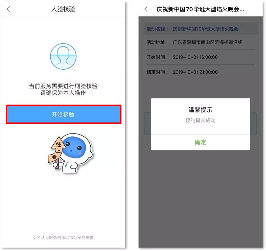 1.關(guān)注“深圳公安”微信公眾號,選擇“民生”欄,點擊焰火晚會預約,通過人臉認證后即可進入預約頁面,如下圖所示: