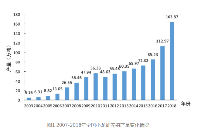 隨著生活水平的提高,人們對(duì)“食”提出了更高要求,色香味俱全的美食往往也更讓人難以抗拒?;疱仧拘↓埼r作為當(dāng)代青年人的“最愛”,已獨(dú)得恩寵許多年,尤其是小龍蝦。每年夏季,是吃小龍蝦的旺季。據(jù)部分媒體不完全統(tǒng)計(jì),光南京一個(gè)城市每年的龍蝦消費(fèi)量都超萬噸,而北上廣深蓉5個(gè)城市,小龍蝦門店數(shù)均超3000家。此外,據(jù)2019年中國(guó)小龍蝦產(chǎn)業(yè)發(fā)展報(bào)告顯示,小龍蝦產(chǎn)業(yè)總產(chǎn)值達(dá)3690億元,占據(jù)了第三產(chǎn)業(yè)產(chǎn)值的主導(dǎo)地位。這種巨大的消費(fèi)力帶動(dòng)了小龍蝦養(yǎng)殖業(yè)的發(fā)展,到2018年,全國(guó)小龍蝦養(yǎng)殖產(chǎn)量已超163萬噸。