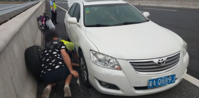 10月5日下午4點(diǎn)多,珠海交警郭警官開(kāi)著警車(chē)在珠三角環(huán)線高速巡邏時(shí),看到有一輛粵AQ××9J號(hào)白色豐田小車(chē)??吭趹?yīng)急車(chē)道上,打著雙閃。郭警官立即上前詢(xún)問(wèn)情況,原來(lái)小車(chē)剛上高速?zèng)]多久就爆胎了,司機(jī)深知在高速停下來(lái)很危險(xiǎn),急得團(tuán)團(tuán)轉(zhuǎn),天還下起了小雨。