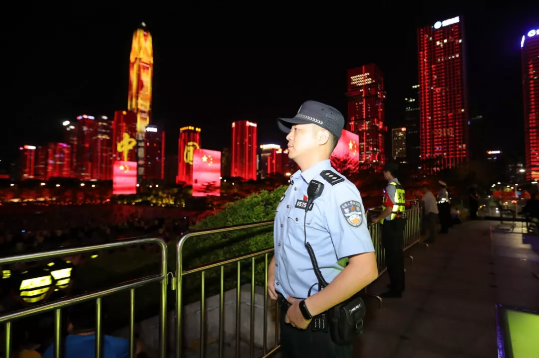 中華人民共和國成立70周年大慶,安保問題成重中之重。10月1日晚,深圳舉行“慶祝新中國70華誕大型焰火晚會”、“國慶節(jié)燈光秀”,福田警隊貢獻福田力量,以“平安”、“有序”獻上最真誠的祝福,在此后的燈光秀安保中,福田警隊更是不遺余力,嚴密落實安全防范措施,有力地確保了市民游客在觀看燈光秀過程中安全、祥和、歡樂的觀感體驗。
