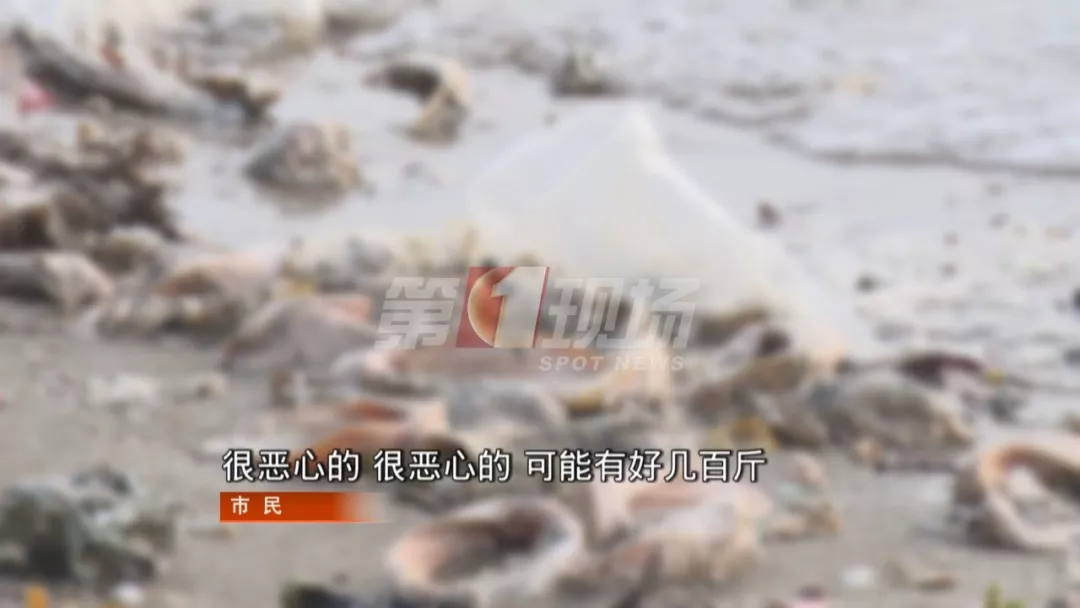 由于涉及到生豬肉,為了避免產(chǎn)生疫情,防疫檢疫相關(guān)部門的工作人員來(lái)到現(xiàn)場(chǎng),對(duì)海灘上散落的豬耳進(jìn)行清理,送往清水河進(jìn)行無(wú)公害化處理,并對(duì)海岸線附近一帶進(jìn)行消殺。