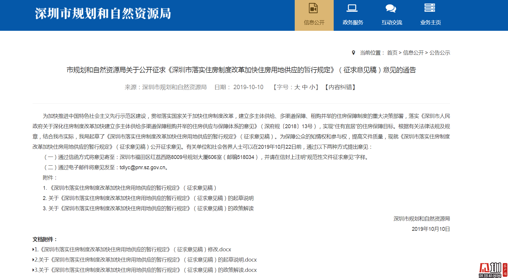 見圳客戶端·深圳新聞網(wǎng)2019年10月10日訊(見圳客戶端、深圳新聞網(wǎng)記者潘潤華)為實(shí)現(xiàn)深圳“住有宜居”的住房保障目標(biāo),10月10日,市規(guī)劃和自然資源局就《深圳市落實(shí)住房制度改革加快住房用地供應(yīng)的暫行規(guī)定》(征求意見稿)公開征求社會意見。為保障住房供應(yīng),文中最終研究確定了十一種用地供應(yīng)渠道。