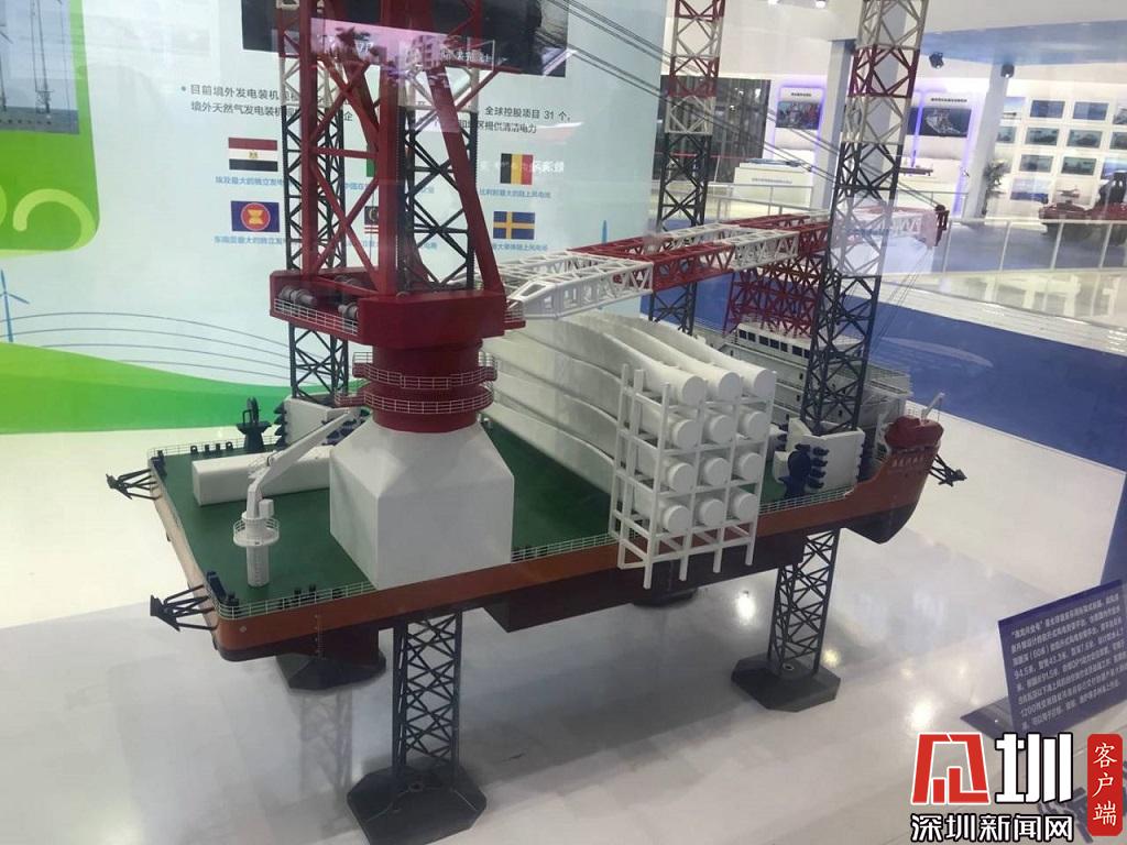 全球首例桁架式樁腿自升風(fēng)電安裝平臺(tái)——“海龍興業(yè)號”模型。