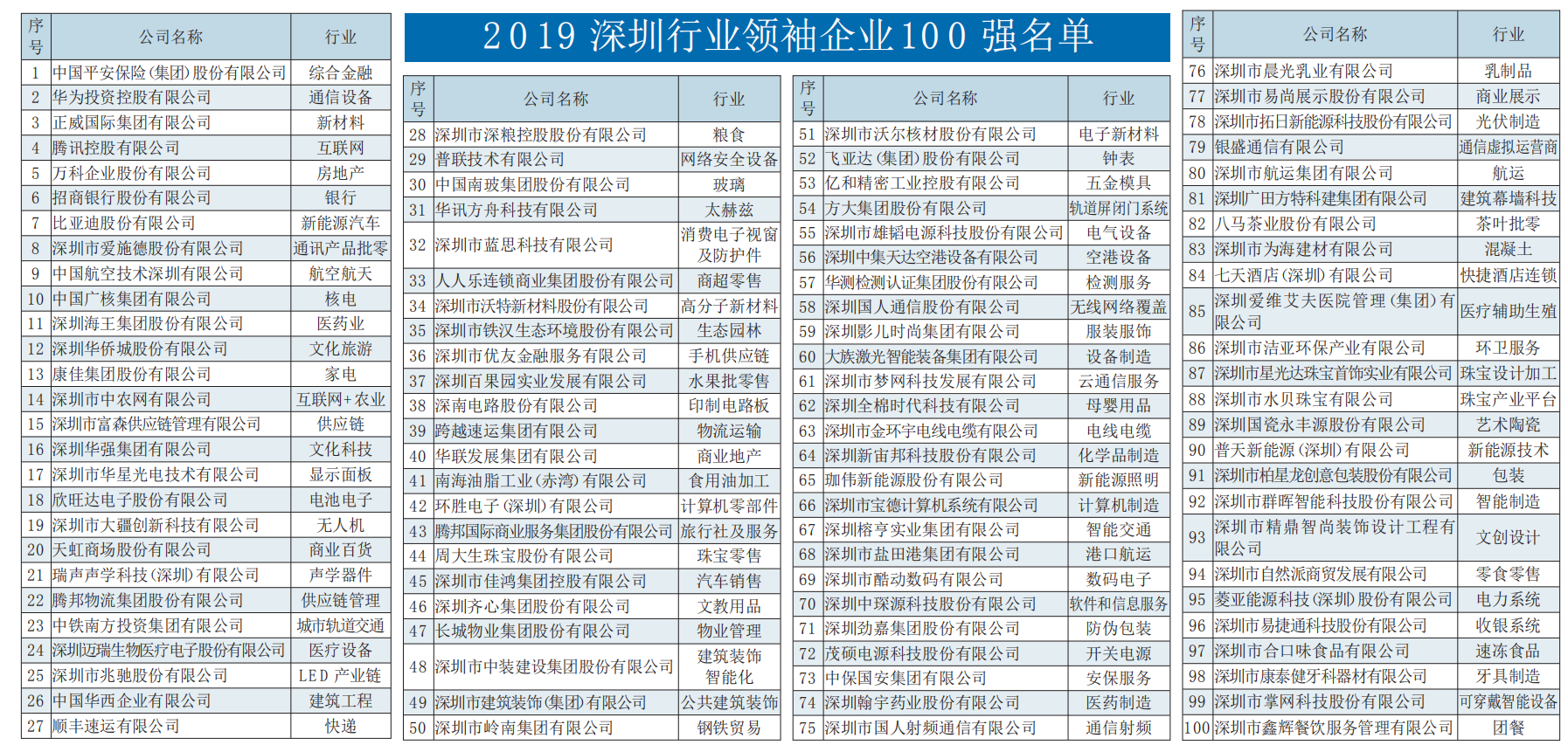 原標題:“深圳行業(yè)領袖企業(yè)100強”榜單發(fā)布