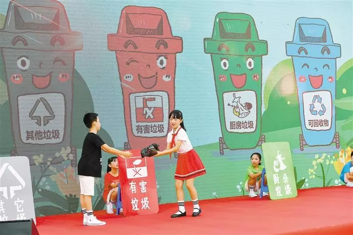 ▲今年暑假,深圳市垃圾分類“小小督導(dǎo)員志愿者”點火行動啟動,羅湖區(qū)東昌小學(xué)1500名學(xué)生被聘為垃圾分類“小小督導(dǎo)員”。深圳商報記者廖萬育攝