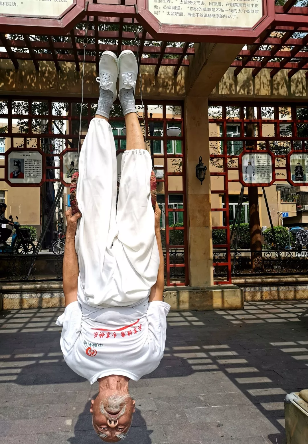魏宗信還自信地表示:“我還能在吊環(huán)上倒立,在雙桿上玩翻身。”每天上午和下午加起來,他要運動兩三個小時。