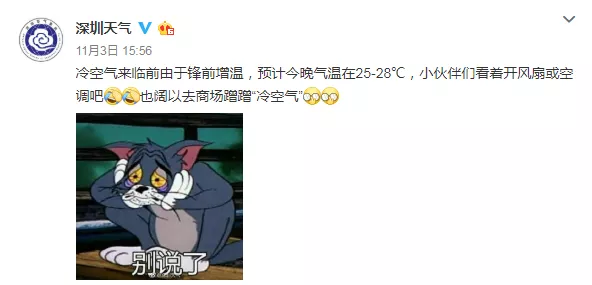 從3日143個(gè)自動(dòng)站的最高氣溫破“3”,到4日只有4個(gè)自動(dòng)站最高氣溫破“3”,我們終于感受到冷空氣跋山涉水來到深圳了,讓我們來看看網(wǎng)友怎么說。