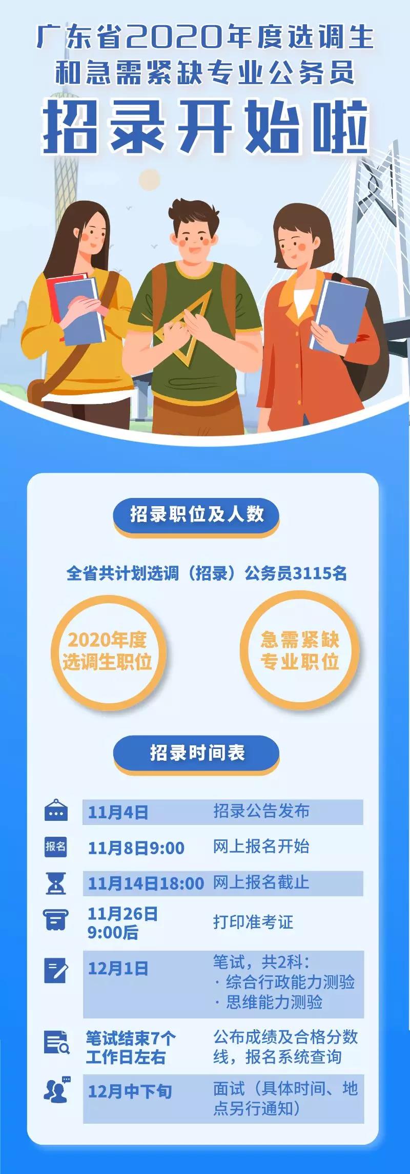原標(biāo)題:廣東省2020年度選調(diào)生和急需緊缺專業(yè)公務(wù)員招錄11月8日開(kāi)始報(bào)名