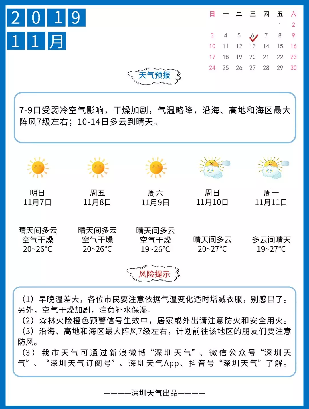 預(yù)計(jì)11月天氣較平穩(wěn),降水偏少,空氣干燥,早晚溫差較大。由于大氣擴(kuò)散氣象條件較差,部分地區(qū)可能會(huì)出現(xiàn)灰霾天氣。雖然目前深圳的冷空氣,好像都不太給力,但是降溫這事誰(shuí)說(shuō)得準(zhǔn)呢,所以,要注意增添衣物啊~