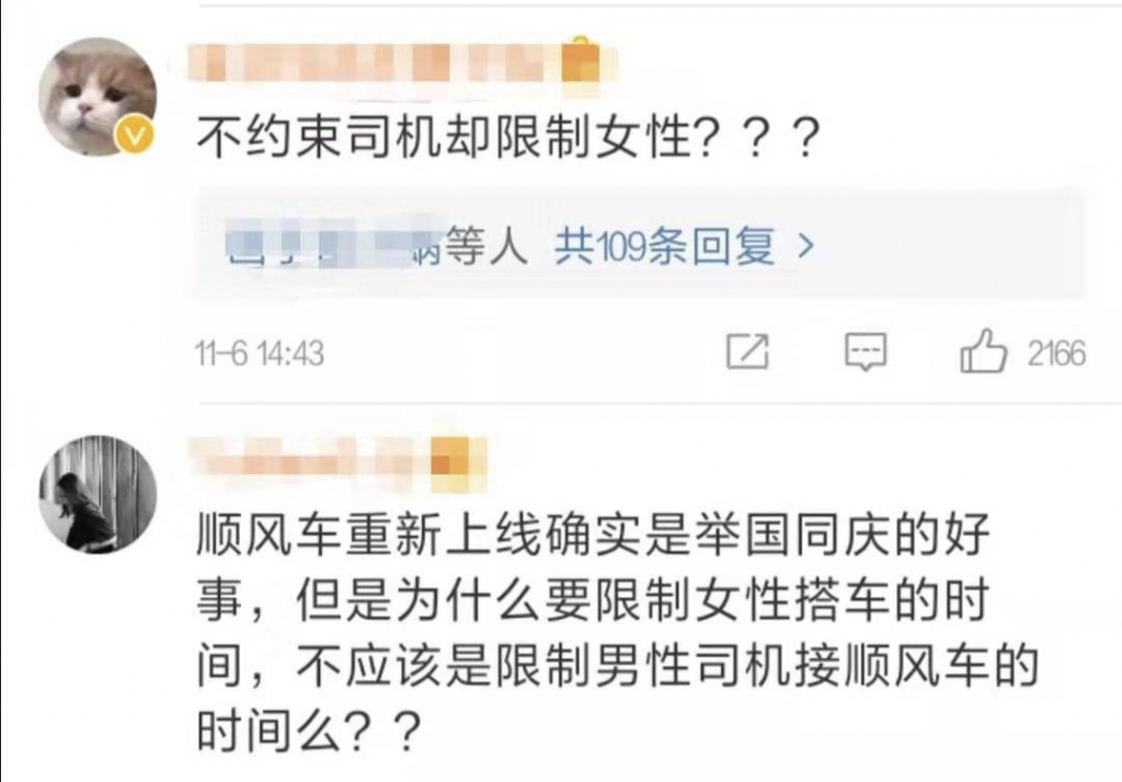 相較于其他安全措施,20:00后不接女性訂單的規(guī)定,引發(fā)的爭議尤其大。很多人覺得,這是對女性的冒犯和隱性歧視。因為有前車之鑒、怕出事后要擔責,干脆讓女性無法方便地打車,屬于典型的因噎廢食。