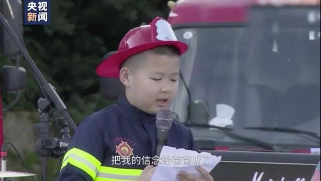一位小朋友為消防員爸爸寫了一封信,