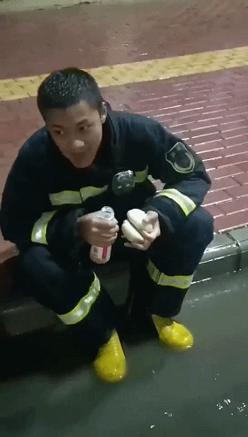 消防員們拿筷子的手都在抖,