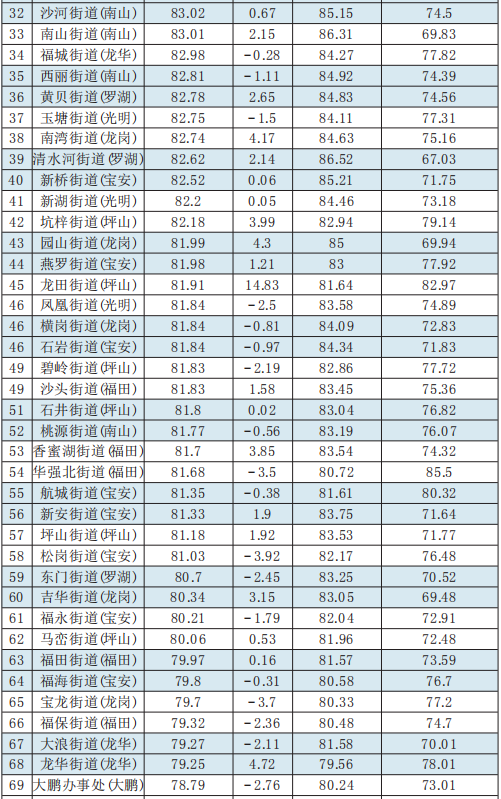 10月份,各區(qū)排名榜上,鹽田區(qū)“勝不驕”,繼續(xù)以優(yōu)異的成績保持第1,拿下“五連冠”,且在今年前10個月的測評中,鹽田區(qū)已經(jīng)8次取得第一名。羅湖區(qū)則“敗不餒”,在去年連續(xù)排名靠后甚至墊底的情況下,毫不氣餒,正視問題,補(bǔ)齊短板,理順機(jī)制,今年指數(shù)得分和排名穩(wěn)步提升,10月份更奪得榜眼,現(xiàn)場考察指數(shù)全市第1,轄區(qū)3個街道進(jìn)入全市排名前6,5個進(jìn)入前15。而龍華區(qū)和龍崗區(qū)則連續(xù)兩月排在倒數(shù)后三,龍崗區(qū)平湖街道連續(xù)3個月排在后5,應(yīng)對照測評情況找問題,出實招,加大整治提升工作力度。
