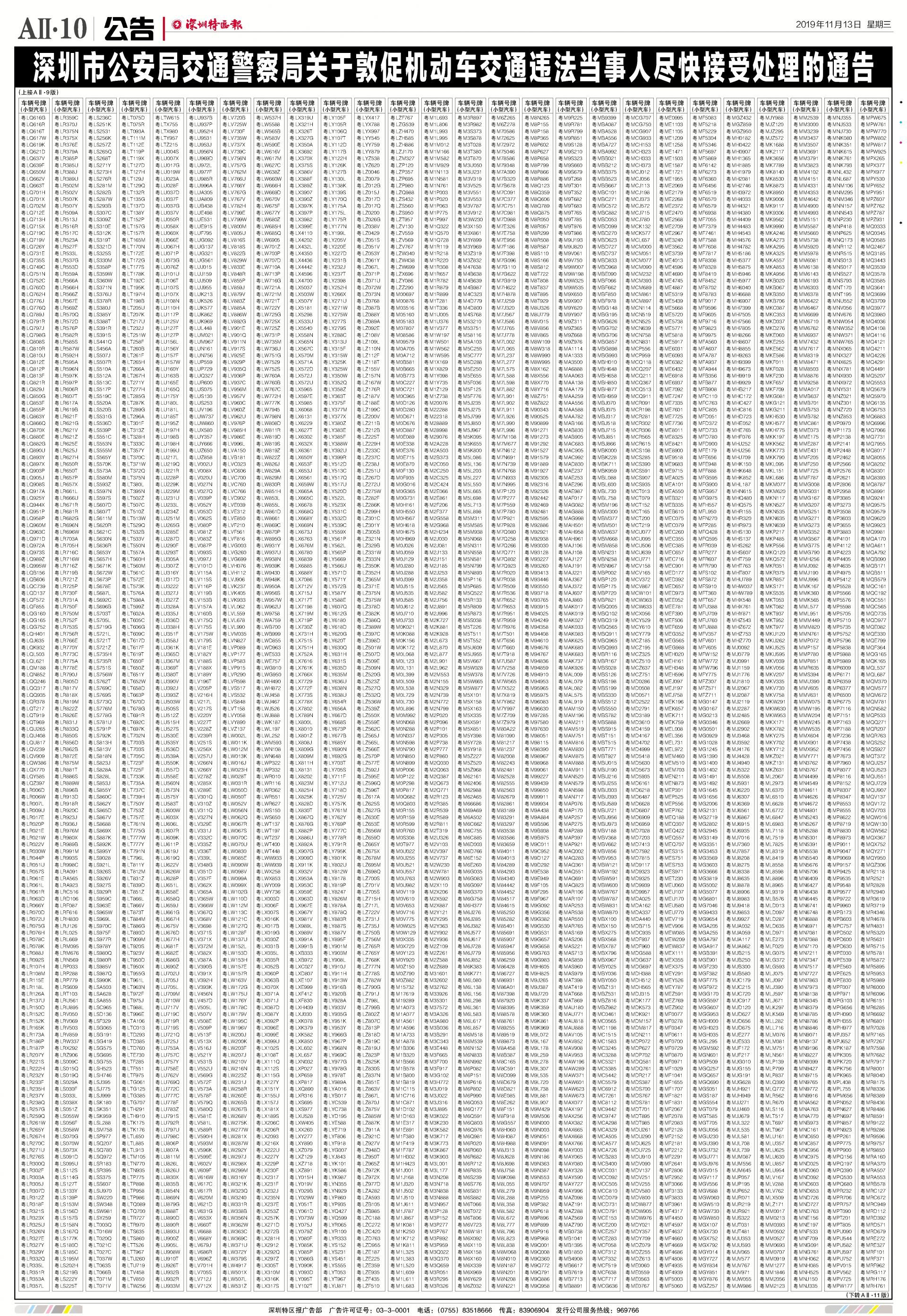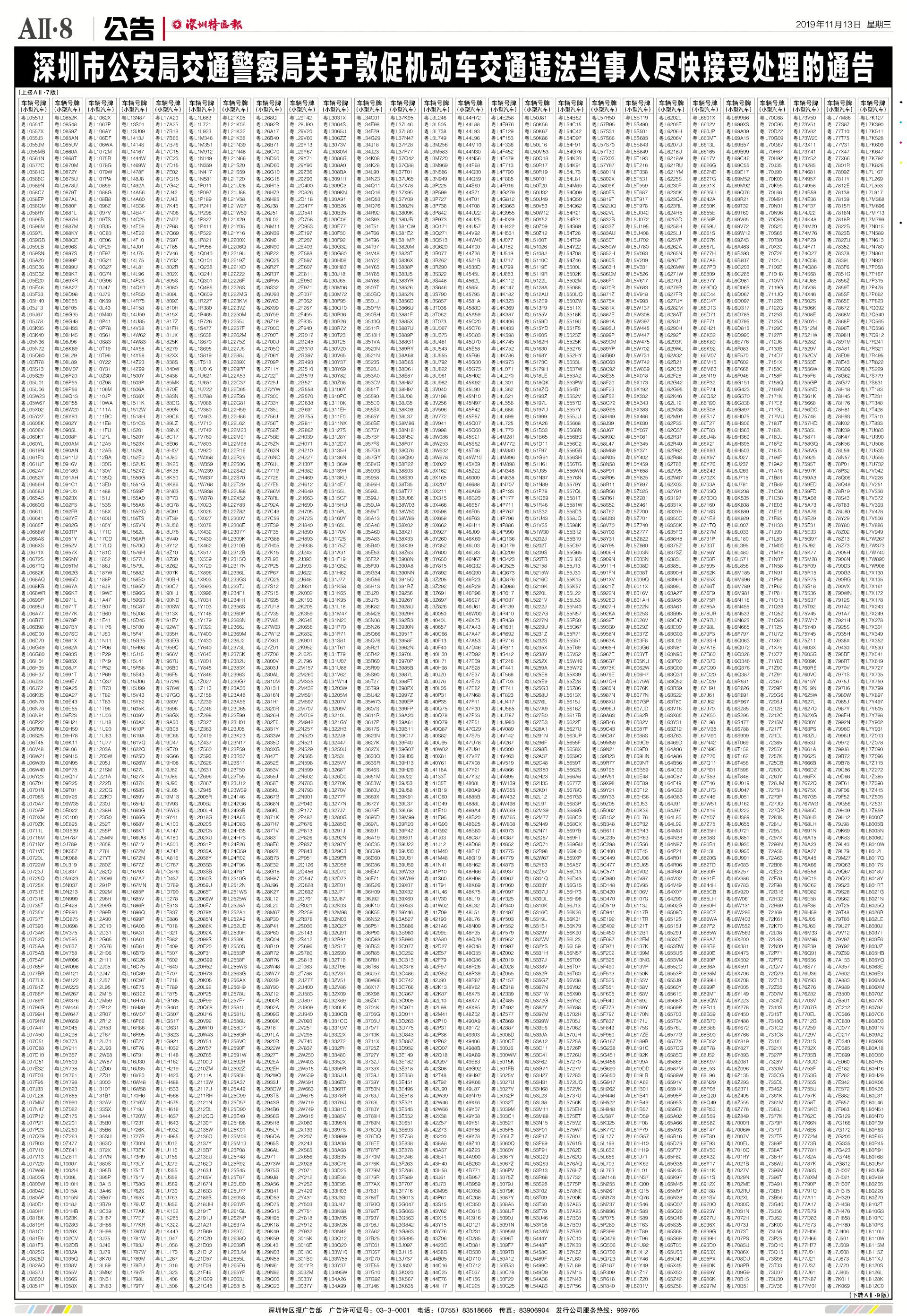 今年7月至10月初,全市機動車被“電子警察”抓拍交通違法行為1342781宗,深圳交警通過多種方式進行交通違法行為告知,但截止至目前仍有部分機動車的非現(xiàn)場交通違法未及時處理。