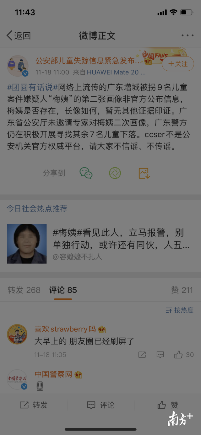 南方網(wǎng)2019年11月18日訊 日前,網(wǎng)上流傳的人販子“梅姨”的消息,公安部相關(guān)部門剛剛通過(guò)官方微博做了最新回復(fù)。