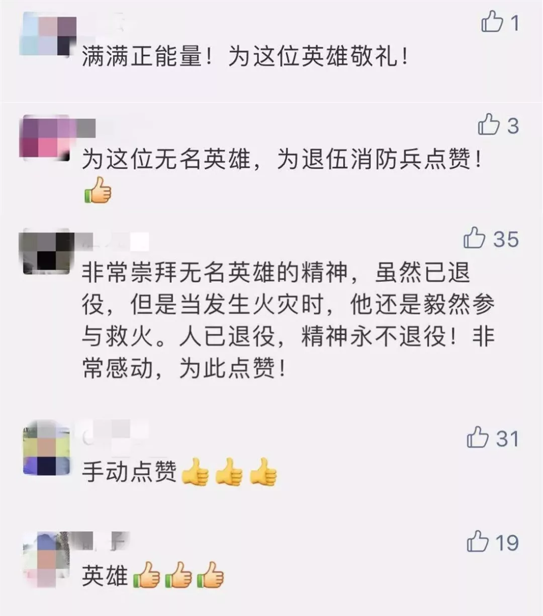 在文章的留言中,網(wǎng)友紛紛為這位救火的英雄手動點贊:“英雄!好樣的!”“退伍不褪色”。