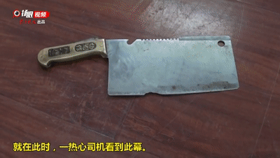 一把明晃晃的菜刀剛好砍進(jìn)車(chē)門(mén)縫里。
