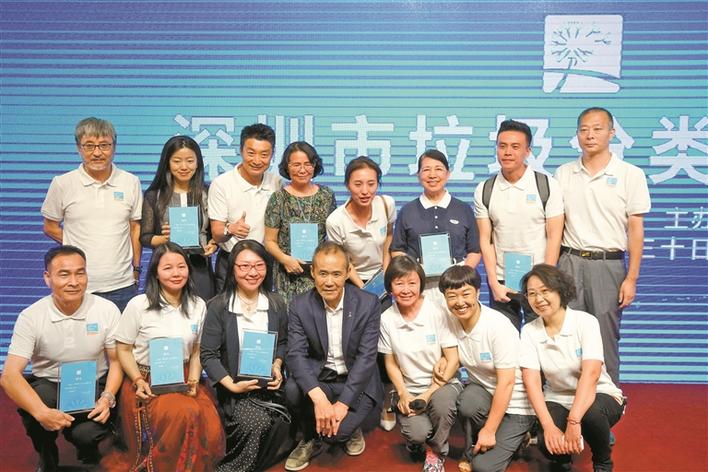 2018年9月1日許楷楠(前排右二)在深圳市垃圾分類(lèi)大使聘任儀式上。