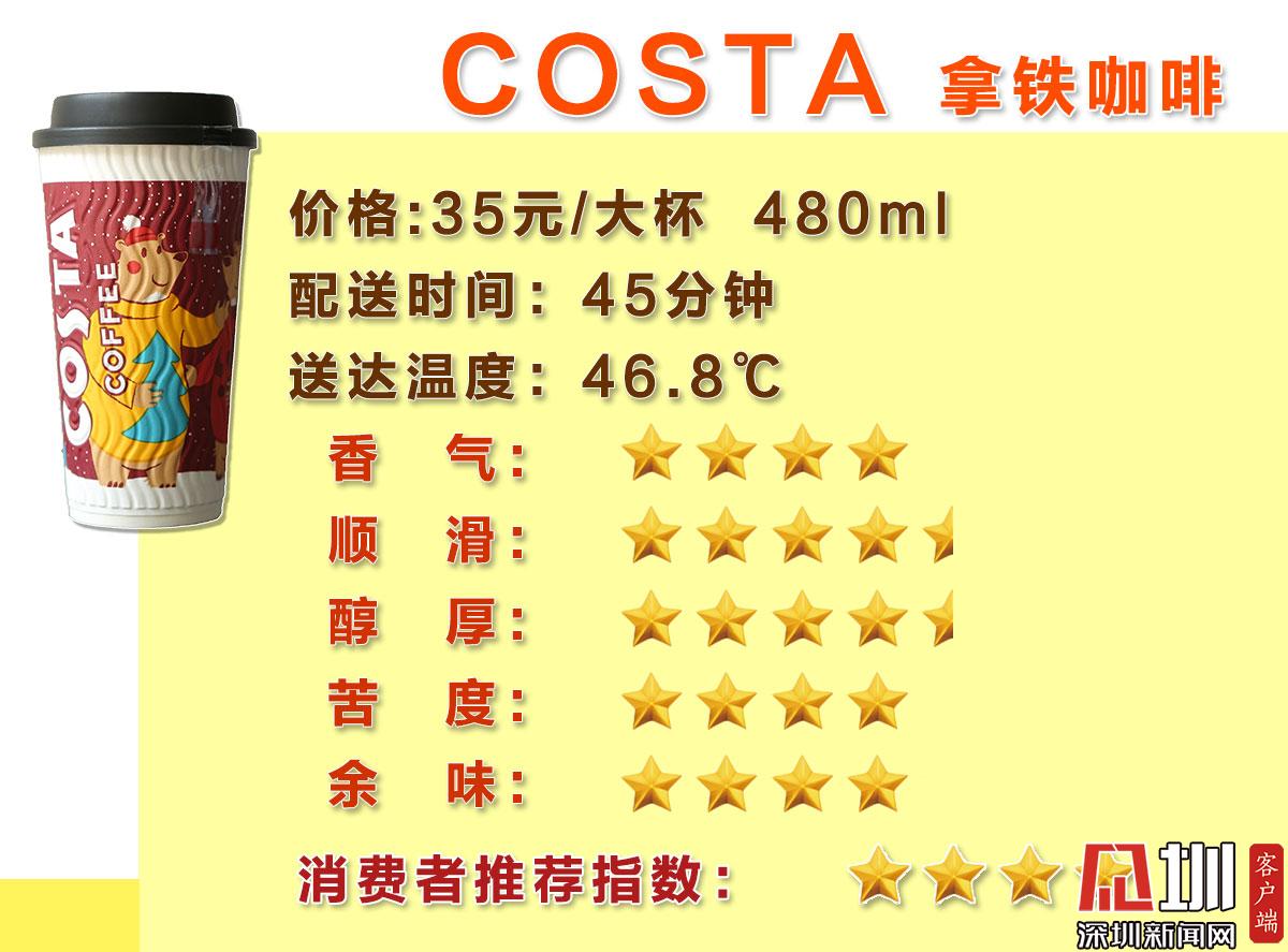 綜合“拿鐵咖啡(熱)”主觀評(píng)測(cè)的5個(gè)維度(香氣、順滑、醇厚、苦度、余味),最終瑞幸在消費(fèi)者推薦指數(shù)評(píng)分中脫穎而出收獲5星好評(píng),星巴克收獲4星半好評(píng)位居第二,Costa4、太平洋僅獲得4星評(píng)價(jià)。