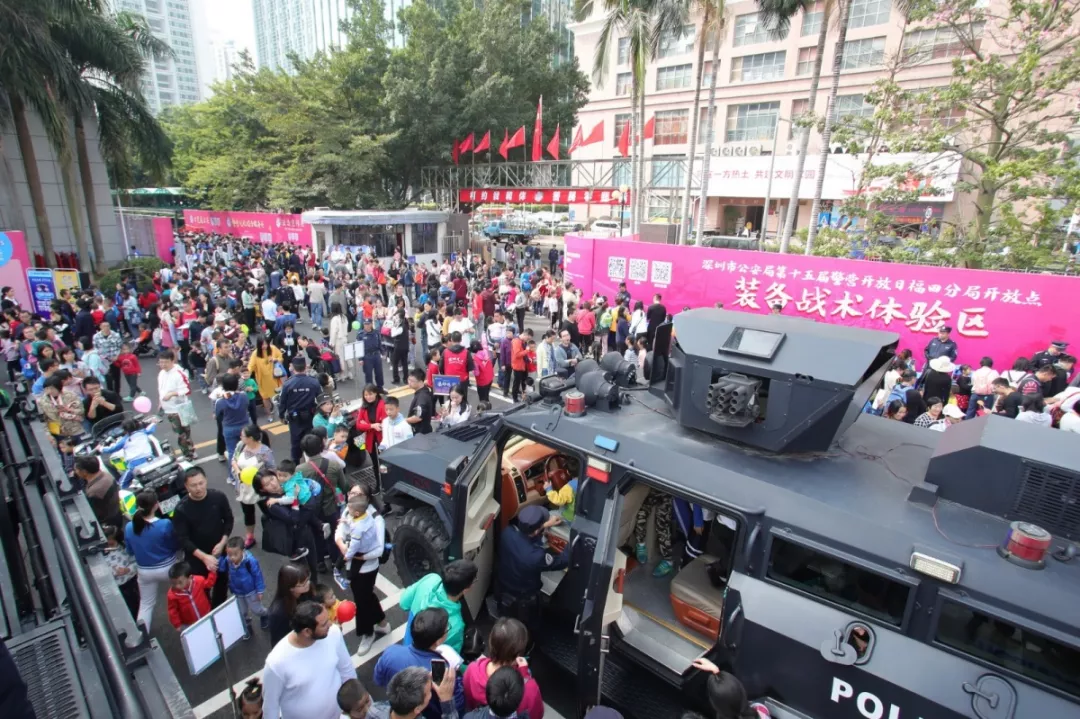 開放日現(xiàn)場,“反詐騙我在線”倡議行動啟動,線上微程序引市民爭相體驗;首批“福田警民關(guān)系建設(shè)形象代言人”受聘,為警民關(guān)系代言;代表委員媒體進警營,開門納諫為民解難題、贈書關(guān)懷溫暖警心;警犬沖鋒槍裝甲車齊上陣,13個活動區(qū)域精彩紛呈。周邊市民扶老攜幼、搭伴前來,過足“警察”癮。據(jù)了解,當(dāng)天豐富多彩的活動共吸引了約15萬市民線上線下齊參與體驗,多角度零距離了解福田“警”色,感受別樣“警”彩。