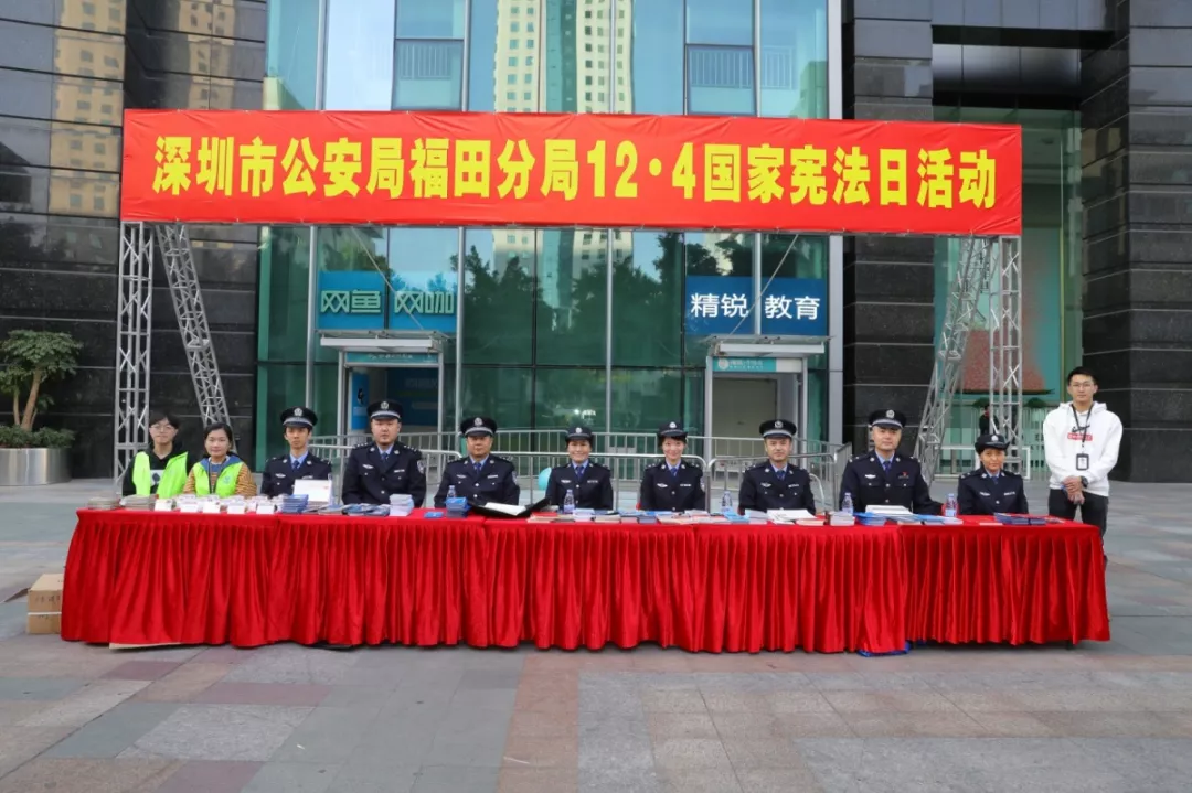 為全面貫徹落實(shí)習(xí)近平總書記全面依法治國新理念新思想新戰(zhàn)略,增強(qiáng)全社會(huì)憲法意識(shí),弘揚(yáng)憲法精神,深圳市公安局福田分局響應(yīng)上級號召,于12月4日下午福田區(qū)馬成時(shí)代廣場開展了“12·4”國家憲法宣傳日活動(dòng)。福田公安分局法制科牽頭組織人口科、治安科、刑警大隊(duì)、經(jīng)偵大隊(duì)、網(wǎng)警大隊(duì)、禁毒大隊(duì)、出入境管理大隊(duì)單位骨干民警參加此次活動(dòng)。