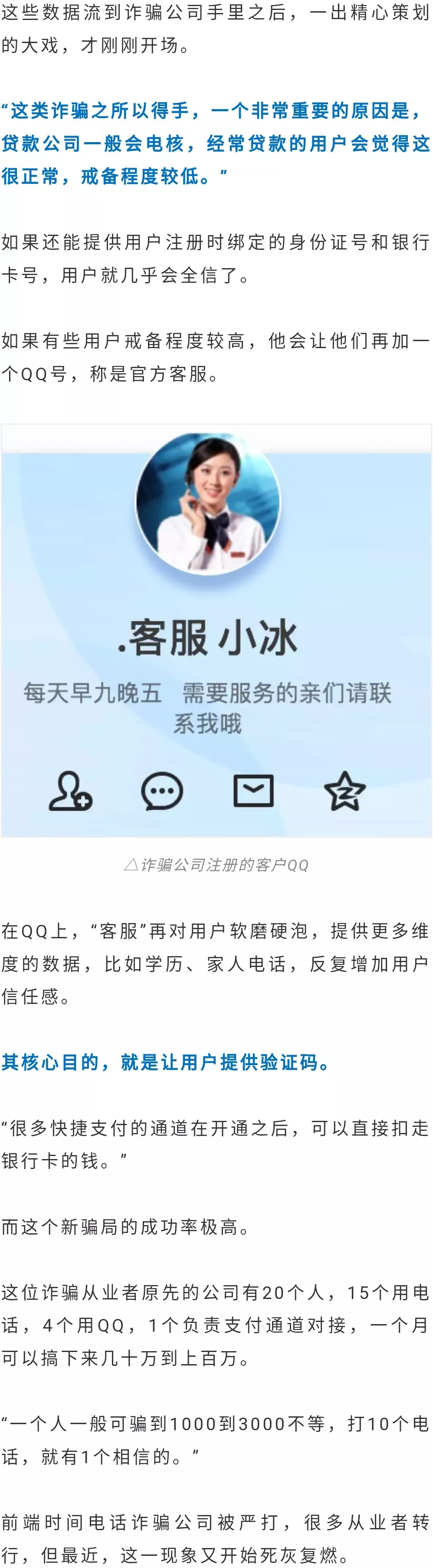 這些數(shù)據(jù)的維度極細(xì),包括姓名、電話、身份證、銀行卡,甚至還包括一些細(xì)致的風(fēng)控維度,如學(xué)歷、社保信息、工作單位、家人電話……