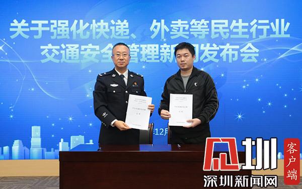 深圳市交警局副局長馮新毅與相關企業(yè)代表簽訂承諾書。