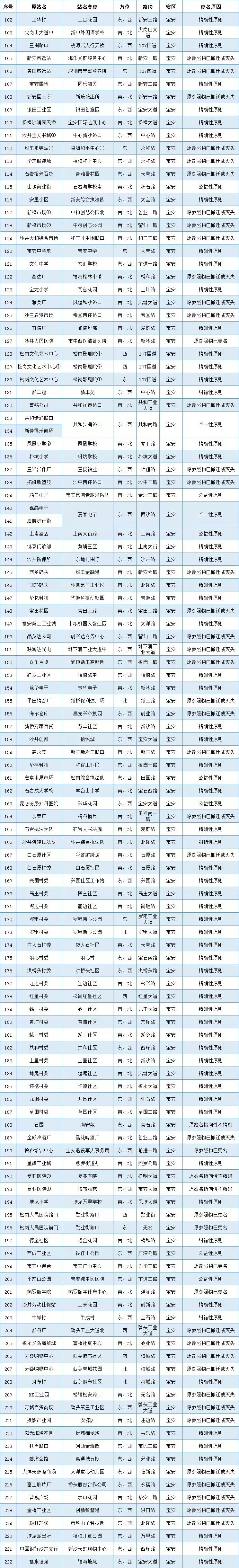 各區(qū)(新區(qū))公交站更名名單