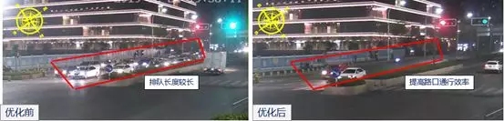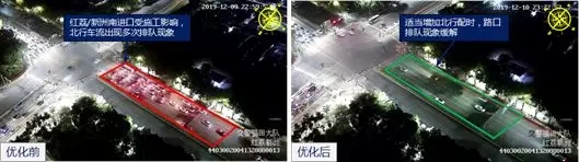 紅荔/新洲路口夜間信號燈優(yōu)化前后對比