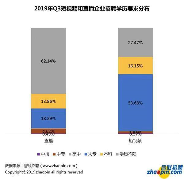 短視頻工作對人才學歷要求高于直播