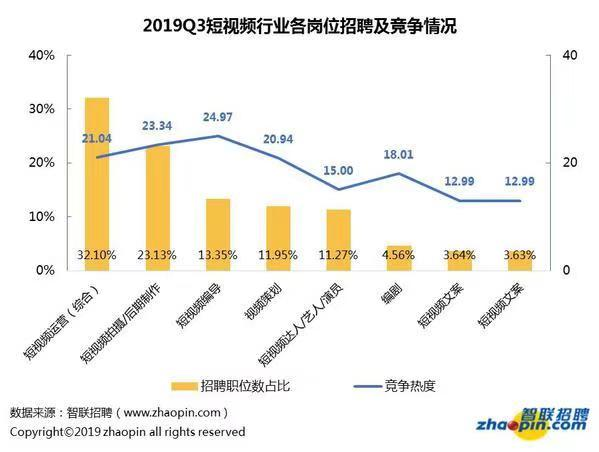 原標題:發(fā)展勢頭驚人!三季度短視頻行業(yè)招聘職位數(shù)同比增長325.28%