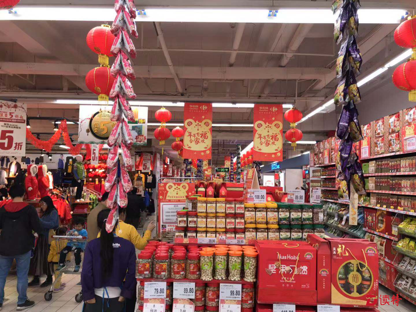 記者在華潤(rùn)萬(wàn)家、沃爾瑪、家樂(lè)福等商超門(mén)店看到,干果飲料、糖果餅干、酒水等各式各樣的年貨禮盒禮包被整齊擺放在顯眼位置,并標(biāo)貼著優(yōu)惠價(jià)簽;年貨街以及春聯(lián)、中國(guó)結(jié)、紅燈籠等春節(jié)飾品區(qū)等購(gòu)物場(chǎng)景一一上線,干貨、腌制食品等熱門(mén)年貨也加入了促銷陣營(yíng);“恭喜發(fā)財(cái)”等新春標(biāo)配曲目已在某商超開(kāi)始播放,讓人可以感受鼠年春節(jié)將至的氛圍。