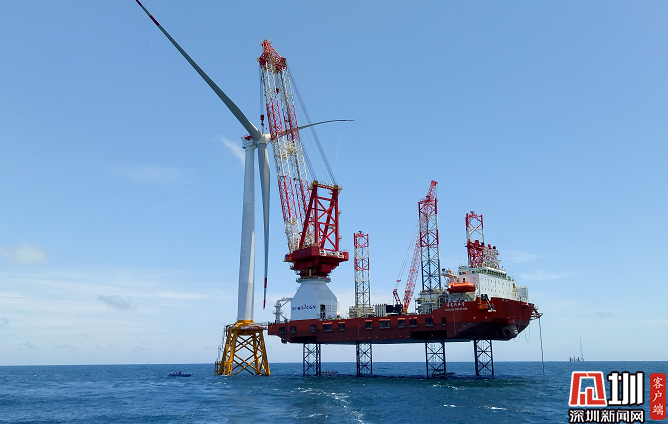 2019年6月27日,中廣核陽江南鵬島海上風電首臺風機完成吊裝。