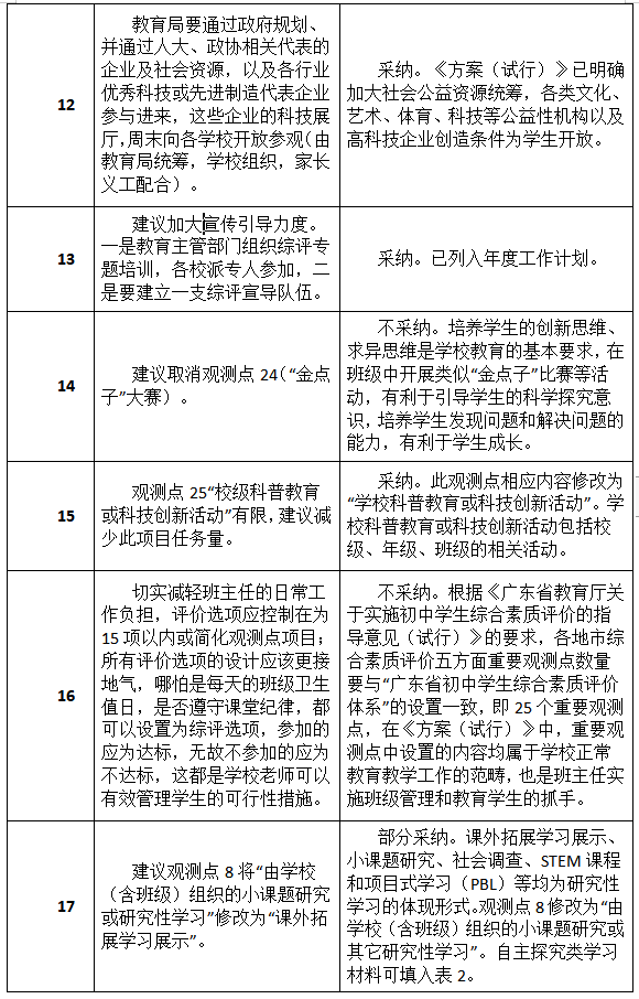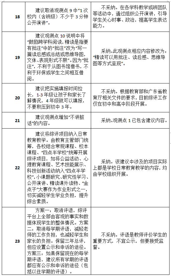 最新進(jìn)展!深圳初中綜評新方案征集到34類建議,其中19類被采納或部分采納