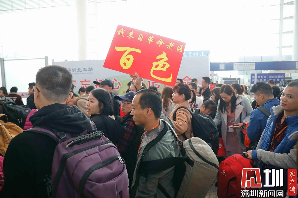 據(jù)了解,本次活動共送出了2300多張免費車票,申請者為廣西百色籍和河池籍的來深建設者。專列分為兩輛,一輛前往百色,另一輛前往河池。